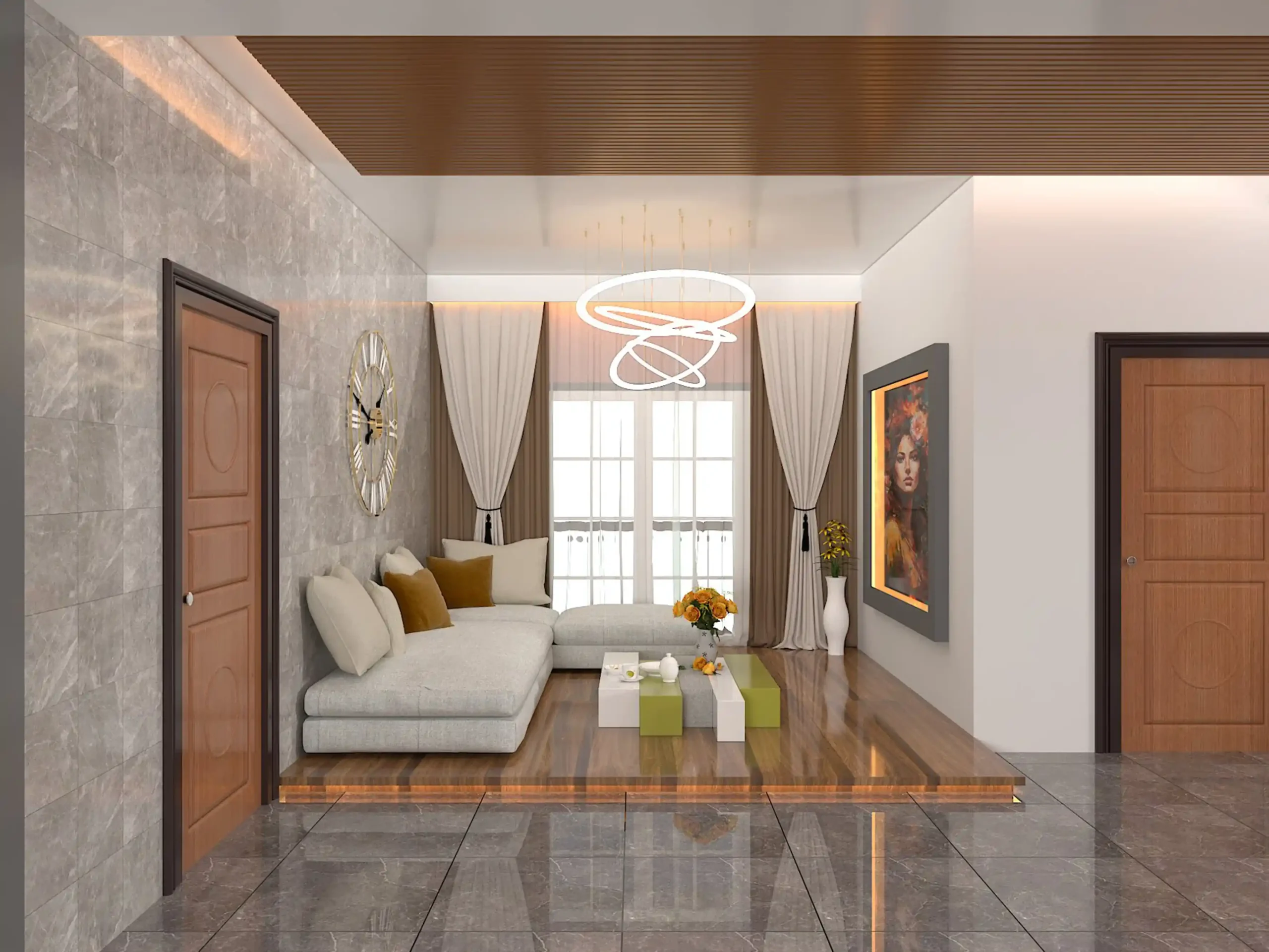 The 2,650 sft duplex at Bashundhara I Block was envisioned as a modern, luxurious family residence with a focus on elegance, comfort, and functionality. The design concept combines contemporary aesthetics with warm, homely touches, ensuring that every corner of the duplex reflects sophistication while meeting the practical needs of daily living.